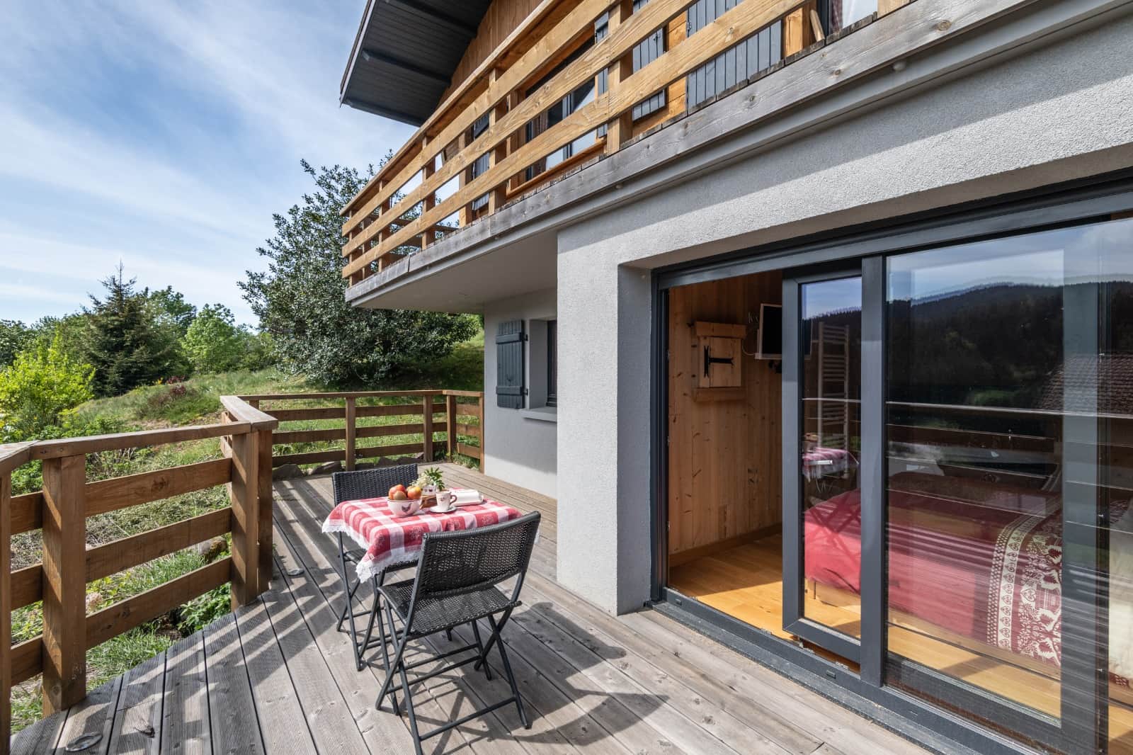 Depuis le double parking, vous accèderez à l’escalier qui vous mènera tout droit à l’entrée du chalet en rez-de-chaussée.